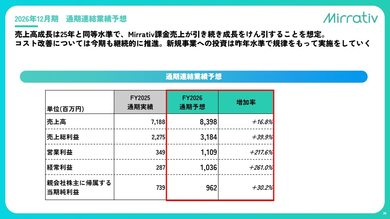 ミラティブ(472A) 2025年12月期 通期 決算説明会動画公... 02/16 12:30