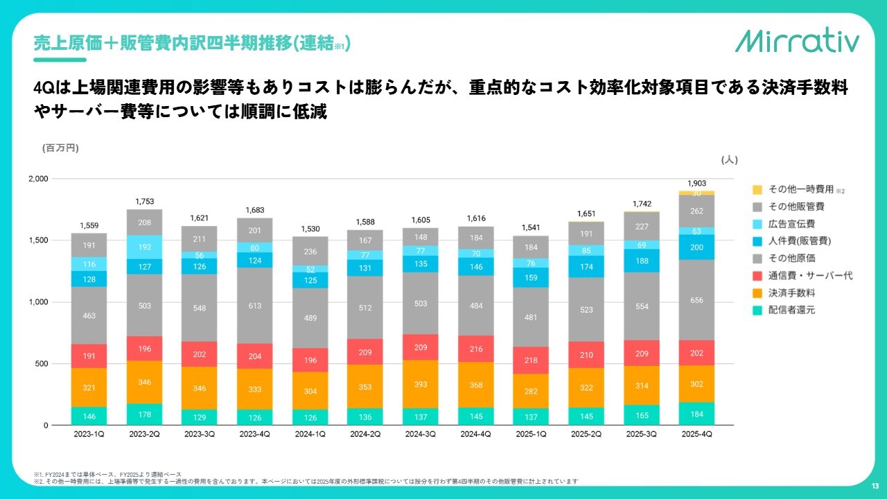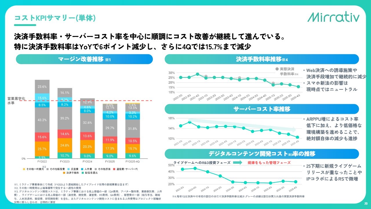 直近の第4四半期では、新しいライブゲームのリリースが重なったことや、IPホルダーさまとのコラボアバターをリリースしたことで若干増加したという実績になっています。いずれにせよ、マージンの改善は順調に進んでおり、今後も改善が見込めることをご理解いただけると幸いです。