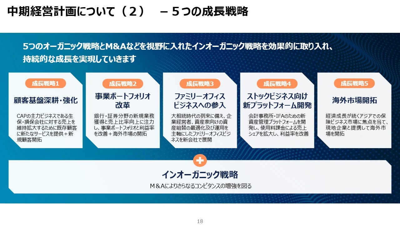 これら5つの成長戦略によって、中期経営計画の目標達成を目指しています。当社のビジネスについては以上のとおりです。
