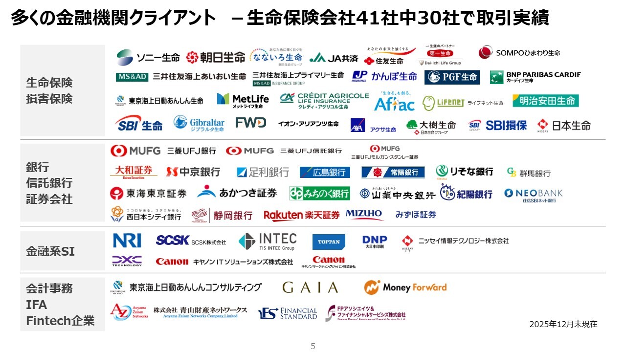 また、証券会社向けの金融商品仲介業チャネルにおいては、資産管理プラットフォームを2025年9月末に納品しました。