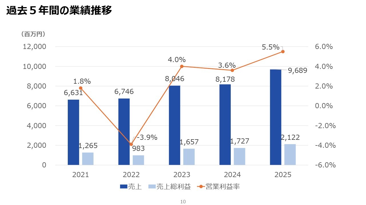 北山:当社は9月決算ですが、直近の2025年9月期は売上高96億8,900万円、営業利益5億3,000万円、親会社株主に帰属する当期純利益4億100万円を計上しました。売上高は前年比18.5パーセントの増収、営業利益は前年比78.4パーセントの増益、親会社株主に帰属する当期純利益は前年比156.3パーセントの増益となりました。