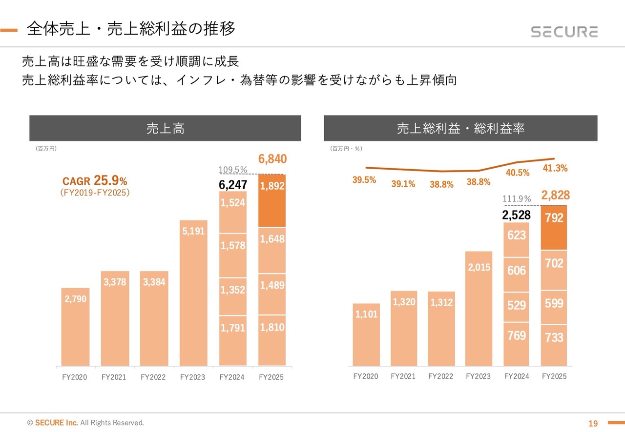 私たちのトレンドとしては、2年から3年大きく成長した後に、組織成長が必要な踊り場が訪れるというパターンが見られます。専門性が高いため、そのような期間に体制を整えた後、再び成長が加速する傾向があると考えています。そのような状況の中でも、売上総利益率は少しずつ上昇しています。