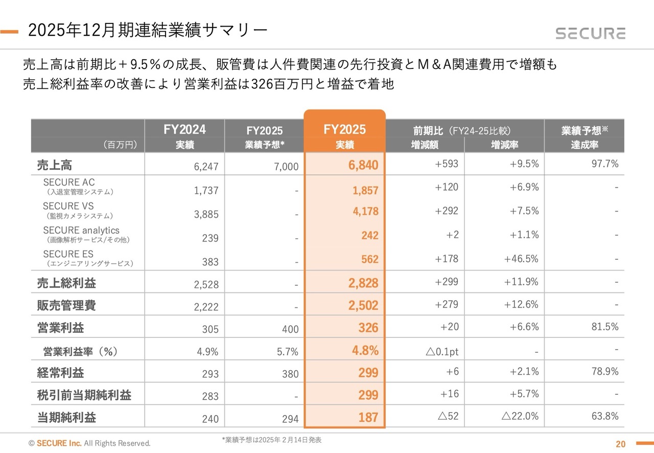 谷口:入退室管理システム「SECURE AC」は上場来、安定的な伸びを示しています。2024年と比較すると、2025年は第1四半期の売上がやや落ち込みました。この理由としては、2024年に大型案件があったため大きく伸びた影響があります。ただし、それ以外の四半期ではしっかりと前年を超える実績を上げることができ、通期でもプラスで着地しました。