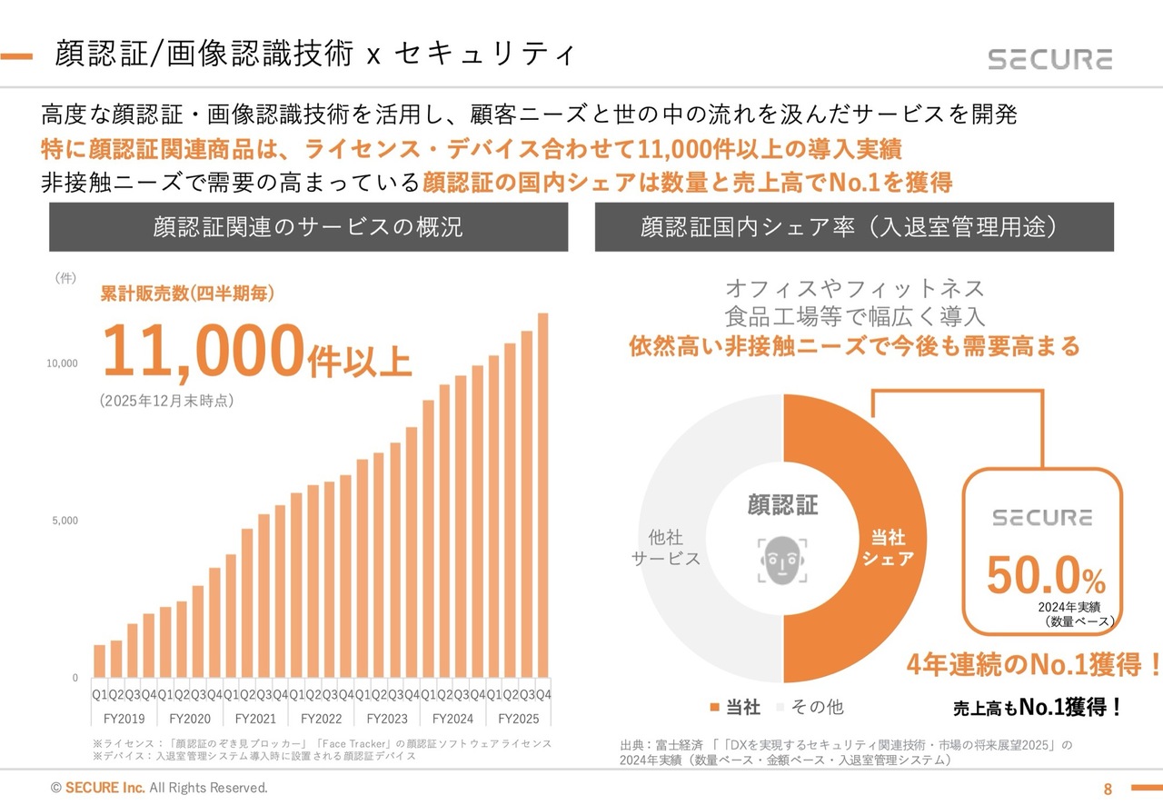 谷口:特に顔認証については、セキュリティ用途で大きなアドバンテージがあります。4年連続でNo.1を獲得し、市場の約半分のシェアを持っています。