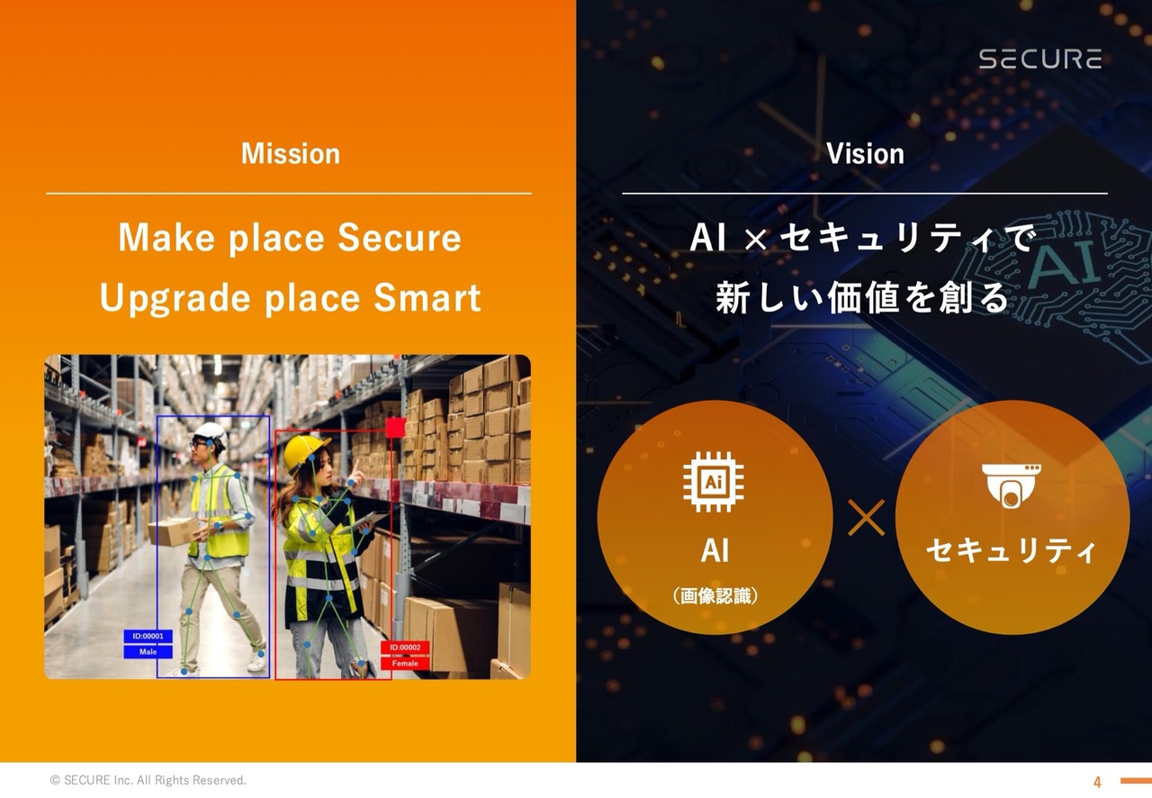 私たちは新しい価値を生み出しながら、一義的には安心安全な環境を構築し、空間をデータ化して、スマートビルやスマートシティのようなスマートな環境にアップグレードすることをミッション・ビジョンとして掲げ、事業を展開しています。