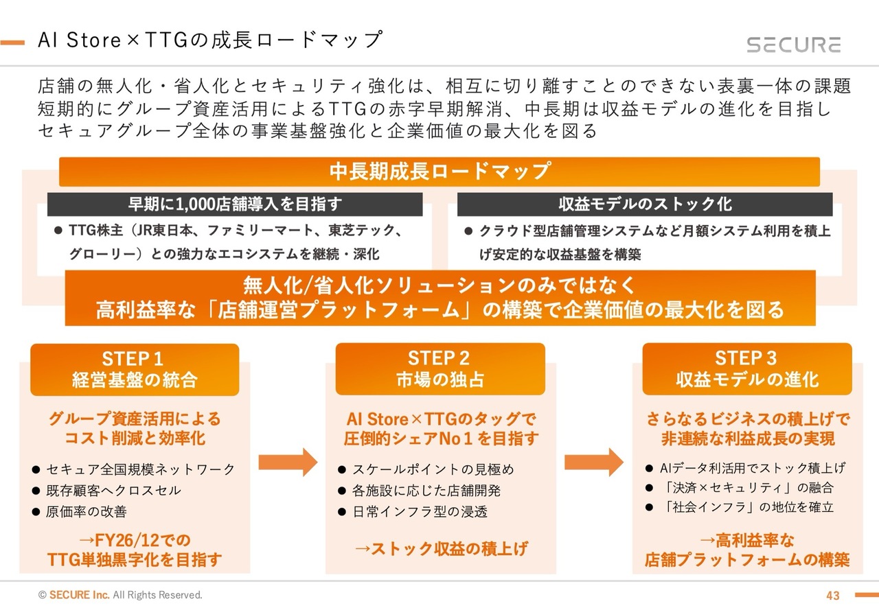 関本:TOUCH TO GOとのシナジーについてです。スライドに「早期に1,000店舗の導入を目指す」と記載がありますが、非常に難しい目標だと思います。どの程度で実現を目指しているのか、スケジュール感を教えてください。