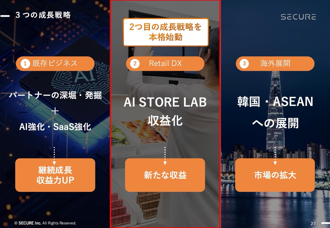 加えて、将来の成長ドライバーとして位置付けているのが、AI STORE事業に代表される「リテールDX」領域です。足元のセキュリティ事業による安定的な成長を土台にしながら、リテールDXを次の成長エンジンとして、中長期的な企業価値の向上を目指していきます。