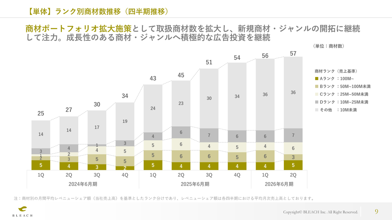 ただし、多くの成長性のある商材への広告投資を進めているため、AランクからDランクのコア商材化を迅速に進め、成長スピードを加速したいと考えています。