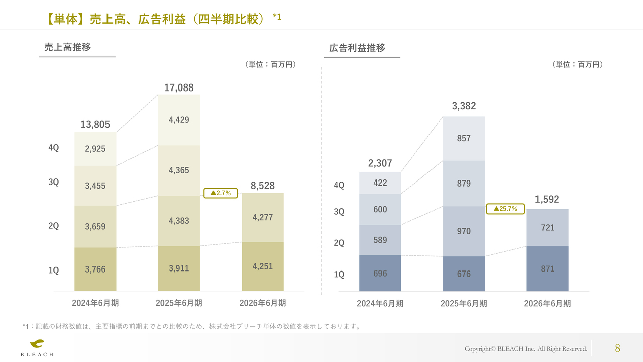 広告利益は、新規商材や新ジャンルへの積極的な広告投資の影響で減少しています。コア商材化を進め、広告利益の増加を目指していきたいと考えています。