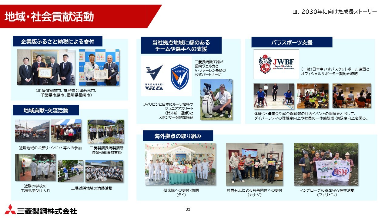 また、売上規模はまだ小さいものの、左下の金属粉末などを扱う素形材事業や、右下の、大型機械に加え、エネルギー、防衛、環境関連製品などを幅広く扱う機器装置事業は、成長期待も大きく、今後の伸長が見込まれています。