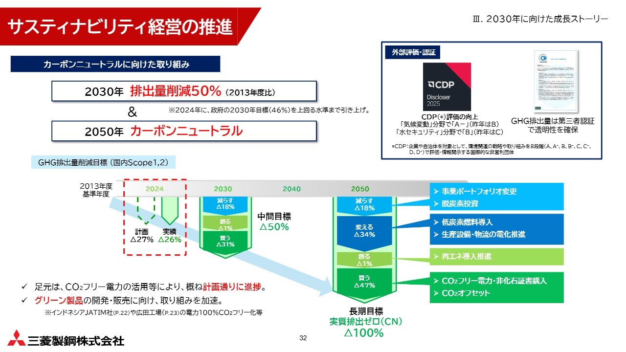 昨年12月には、特殊鋼分野としては初となるインドネシアの「グリーンインダストリー認証」を取得しました。引き続き、お客さまの脱炭素需要を捉えながら、さらなる成長を目指していきます。