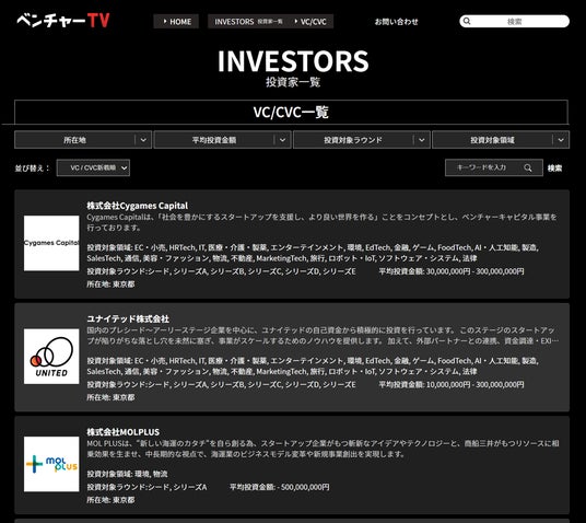 この度、VC/CVC、事業会社及びエンジェル投資家が一覧で閲覧できる「投資家名鑑」に、電通グループのCVCである「電通ベンチャーズ」が参画しました。今後もベンチャーTVは、国内の大手企業とスタートアップを繋ぎ、新たなイノベーションが起きる仕組みづくりをサポートしてまいります。