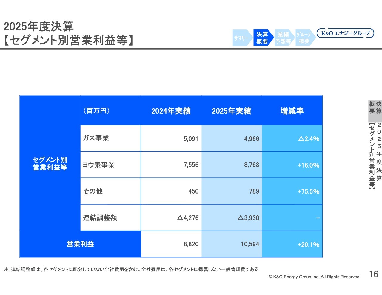 2025年度決算【セグメント別営業利益等】