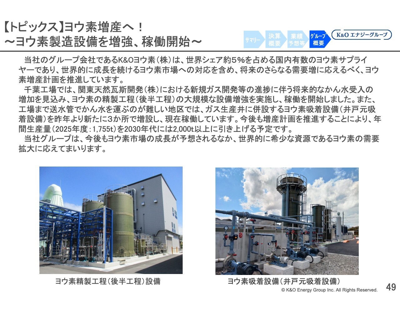 内容についてはスライドに記載の通りですが、ヨウ素の生産量が2024年以降、順調に伸びていることが確認できます。