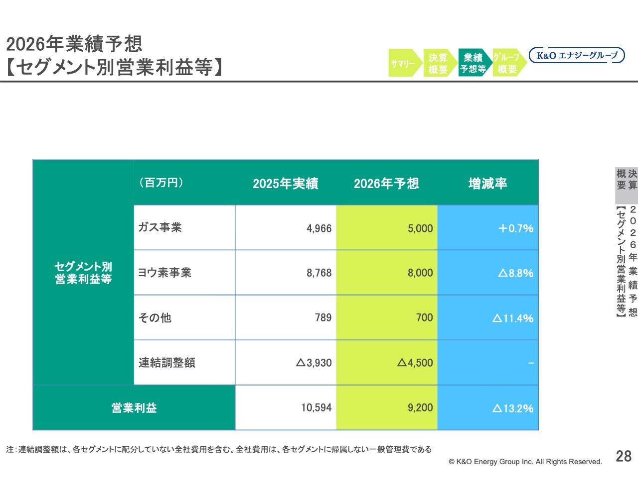2026年業績予想【セグメント別営業利益等】