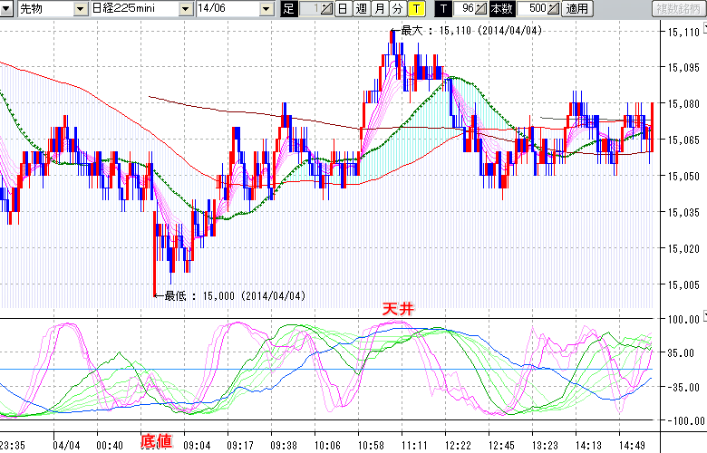 日経平均は ¥15,063.77 (-8.11) 反落 ボリンジャーバンド(25日)は、+1.1 σ JPX日経インデックス400は ¥11,023.72 (-5.56) 225mini(6月限) 大引け ¥15,080 (+0) 東証一部の25日騰落レシオは 106.90東証一部の出来高は 17.0 億株 相場は小幅下落。 出来高は20億株を割りました。ドル/円は 103円台後半。 -