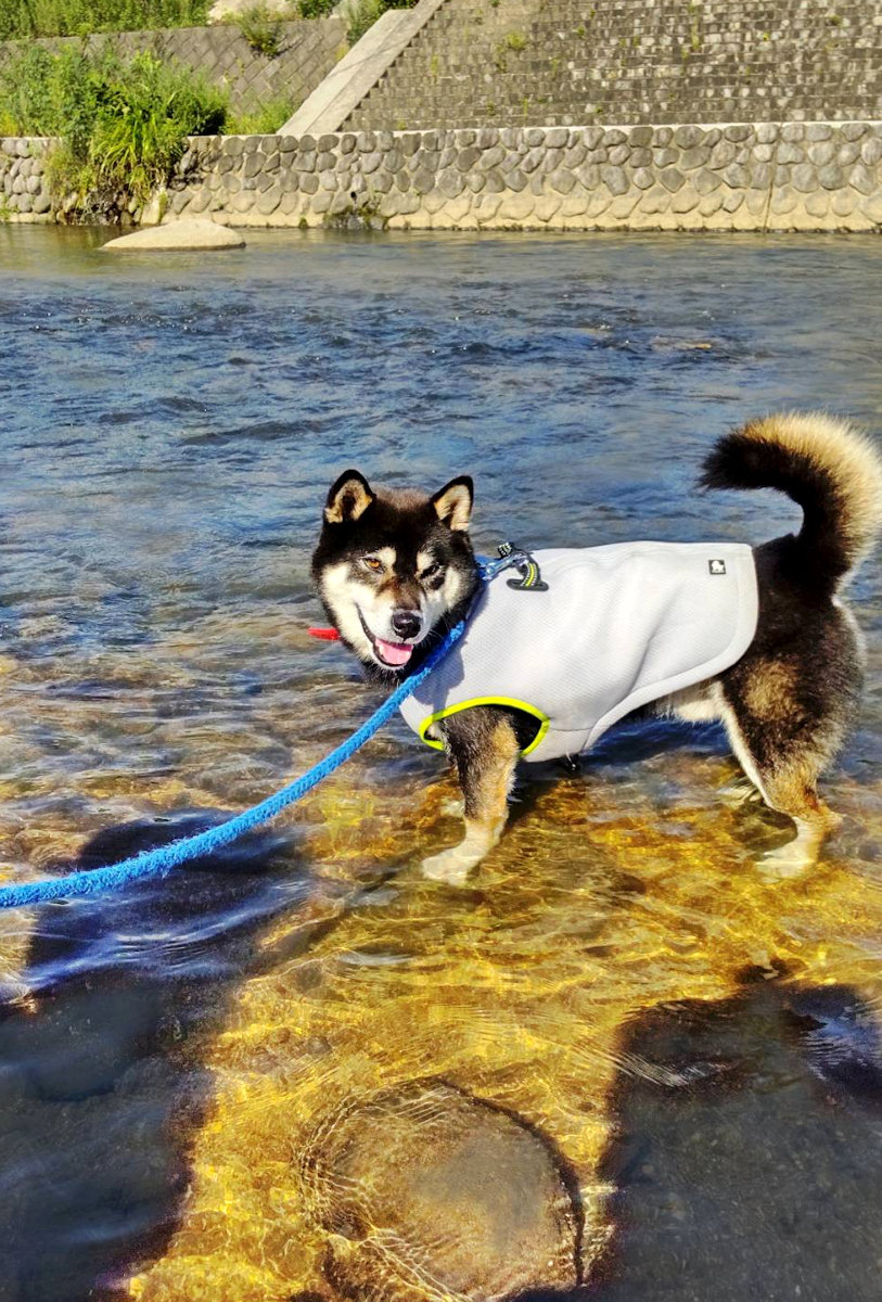 今日は、川沿いをお散歩して泳がせました。