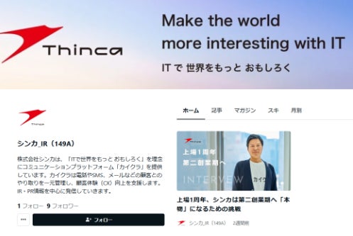 2014年に創業した株式会社シンカは、10周年を迎えた2024年3月27日に東京証券取引所グロース市場に上場。そこから1年を経て、第二創業期を迎えています。私たちは「ITで世界をもっとおもしろく」という理念のもと、会話やコミュニケーションにまつわる課題を解決し、企業活動そのものを進化させることを目指しています。noteでは、経営の考えやプロダクトの進化の裏側などを率直に発信し、株主・投資家の皆さまにより深くシンカをご理解いただける場にしていきます。ぜひご期待ください。