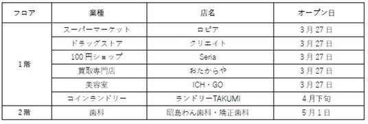 ~スーパー「ロピア」など、毎日の生活に役立つ全7店舗が出店~