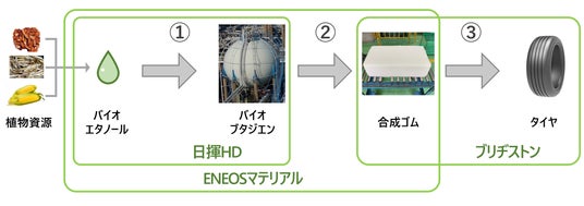 株式会社ブリヂストン(代表執行役 Global CEO:石橋 秀一/以下、ブリヂストン)、株式会社ENEOSマテリアル(代表取締役社長:平野 勇人/以下、ENEOSマテリアル)および日揮ホールディングス株式会社(代表取締役会長CEO:佐藤 雅之/以下、日揮HD)は、植物資源由来の合成ゴムを使用したタイヤの商業化に向けた3社連携を加速します。