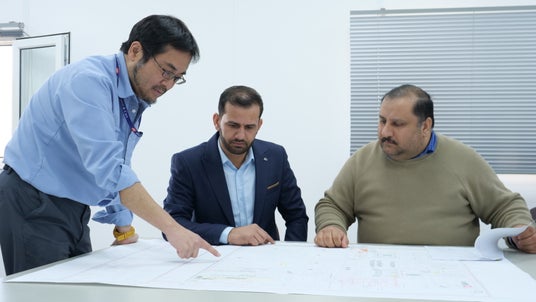 安全かつ効率的なプラント操業に関して議論を交わす南部精製公社職員と当社グループのエンジニア