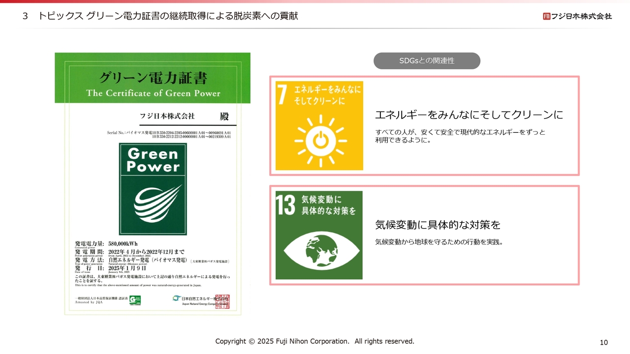 3 トピックス グリーン電力証書の継続取得による脱炭素への貢献