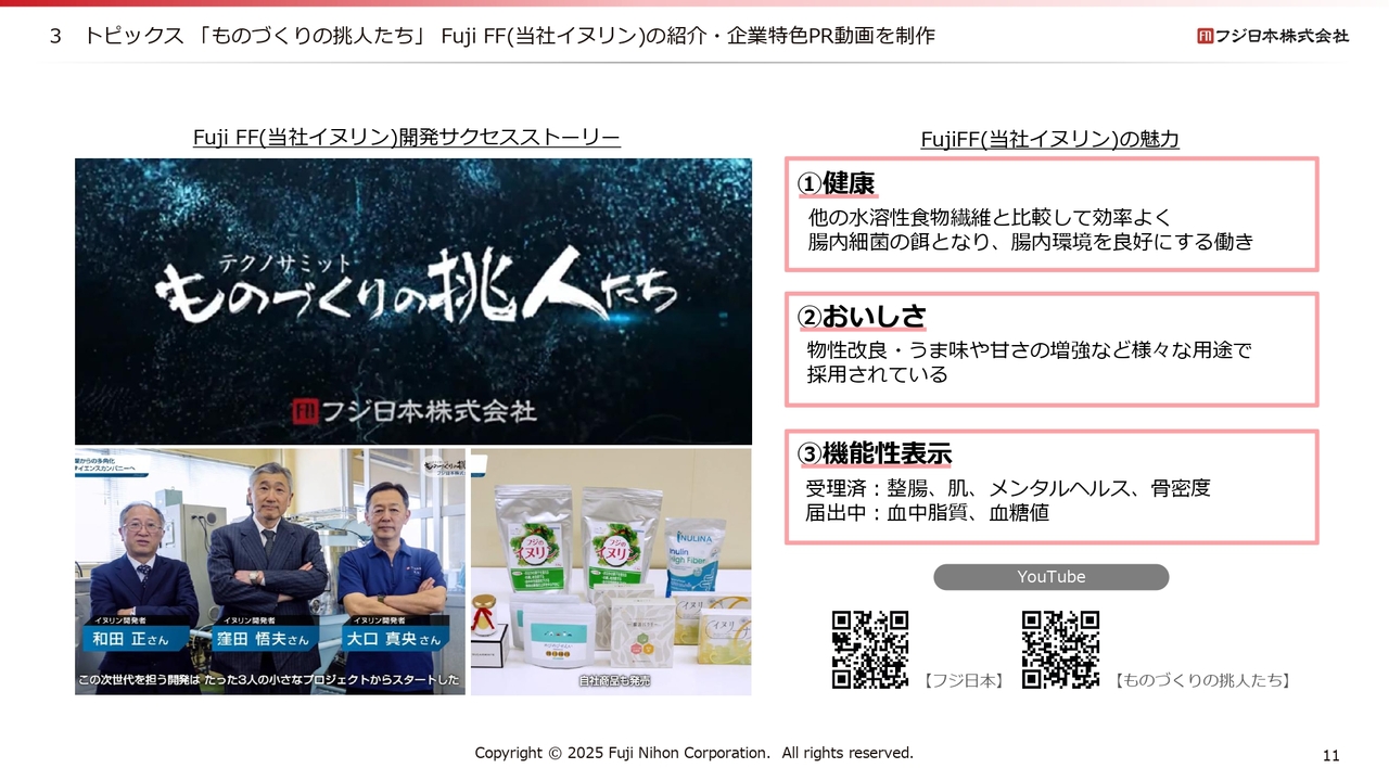 3 トピックス 「ものづくりの挑人たち」 Fuji FF(当社イヌリン)の紹介・企業特色PR動画を制作