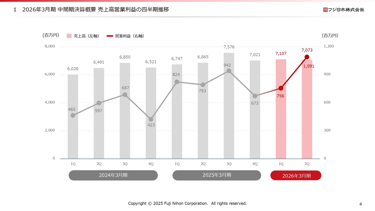 1 2026年3月期 中間期決算概要 売上高営業利益の四半期推移
