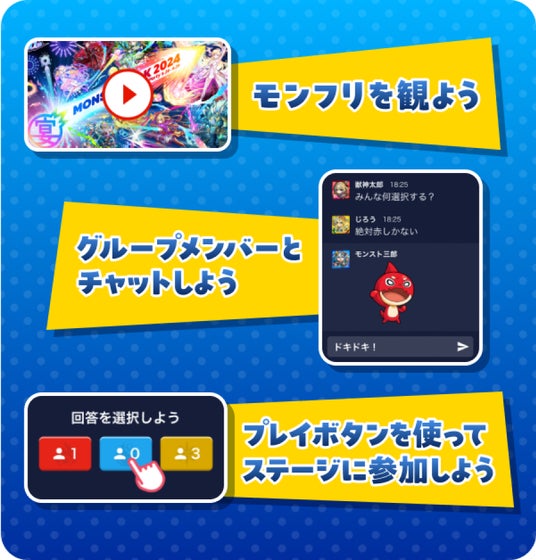 - 最大20名でワイワイ視聴、ステージに参加できるモンストCONNECT