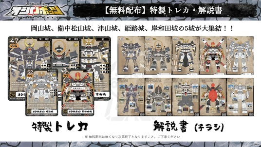 トレーディングカード、解説書(チラシ・岡山城、備中松山城、津山城、姫路城、岸和田城)配布