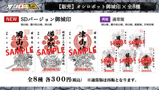・【再販】オシロボット御城印(岡山城、備中松山城、津山城、姫路城、岸和田城)300円(税込)