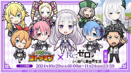 株式会社MIXI(東京都渋谷区、代表取締役社長 上級執行役員 CEO:木村 弘毅)は、スマホアプリの「ことば」で闘う新感覚RPG「共闘ことばRPG コトダマン」(以下コトダマン)において、TVアニメ『Re:ゼロから始める異世界生活』とのコラボ第2弾を、本年10月29日(火)より開催します。