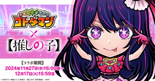 株式会社MIXI(東京都渋谷区、代表取締役社長 上級執行役員 CEO:木村 弘毅)は、スマホアプリの「ことば」で闘う新感覚RPG「共闘ことばRPG コトダマン」(以下コトダマン)において、TVアニメ『【推しの子】』との初コラボを、本年11月27日(水)より開催します。