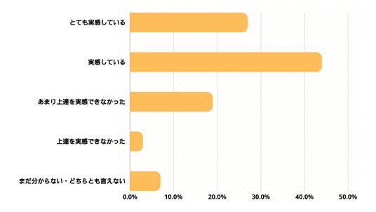 約7割の方がプログラミングスキルの向上を実感したと答えています。