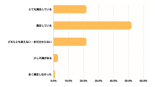 7割以上の方が子ども向けプログラミング教室に満足していると回答しています。明らかに不満を感じている方は4%だけで、全く満足していないと感じた方は1%です。これにより、大半の受講生が満足していることがわかります。