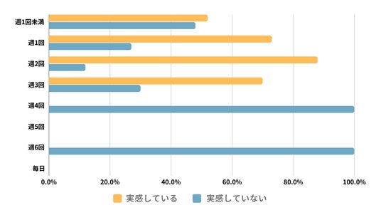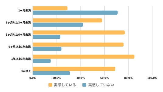 3ヶ月以上継続することで、プログラミングスキルの向上を実感している率が高いことが分かりました。プログラミングスキルを習得するには、最低でも3ヶ月は継続することを検討するのが良さそうです。