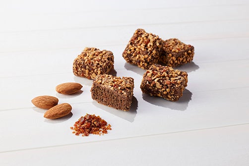 キャラメル風味のチョコレートをたっぷりと染み込ませたビスケットに、キャラメリゼしたカリカリのシュガーチップや香ばしいアーモンドをまぶし、サクッとした軽い食感に仕立てました。