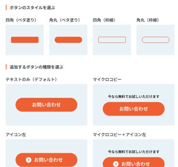 角丸や白抜きなど、多様なボタンテンプレートを用意。選択して文言や色を変えるだけで、簡単にページに挿入できます。