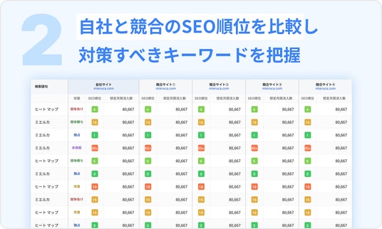 ● 競合サイトとの検索順位比較(勝ち負けの可視化)