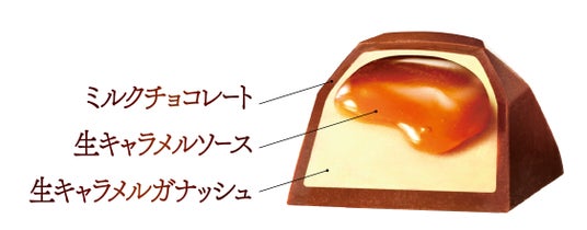 ・とろける生キャラメルソースと発酵バター入りの生キャラメルガナッシュをミルクチョコレートで包んだ大粒ルックチョコレート