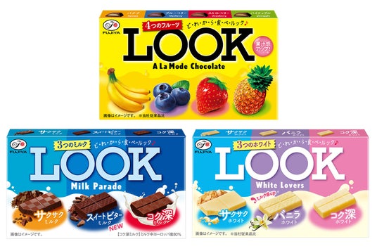 1箱で4つの味が楽しめる、黄色いパッケージでおなじみの「ルック(ア・ラ・モード)」、1箱で3つのミルクチョコレートが楽しめる「ルック(ミルクパレード)」、1箱で3つのホワイトチョコレートが楽しめる「ルック(ホワイトラバーズ)」。これらの定番ルック3品がよりおいしく、より食べくらべを楽しめる品質にリニューアルし、パッケージも一新します。