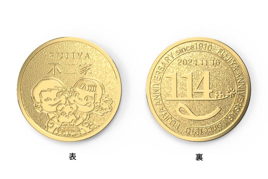 記念すべき5年目はペコちゃん、ポコちゃん、ドッグが集まった、不二家ならではのデザインに。創業日にあたる11月16日(土)限定で、税込1,114円以上お買い上げのお客様に先着で「114周年ペコちゃんオリジナルメダル」1枚をプレゼントします。