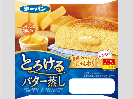 500wの電子レンジで約20秒あたためると、蒸しケーキはほっこりやわらかく、発酵バター入りクリームはじゅんわりとした食感になります。