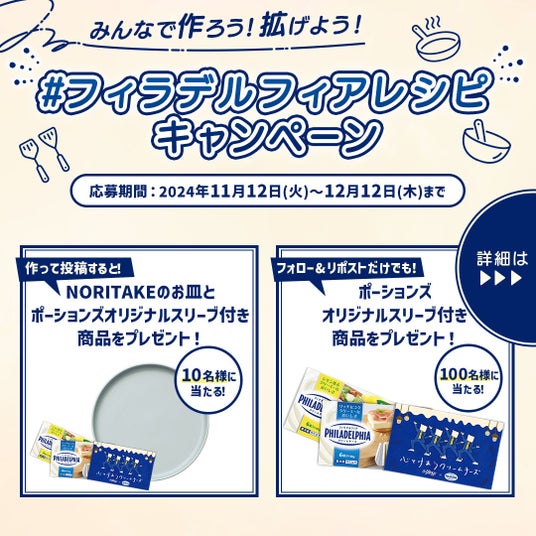 動画の公開に合わせ、Xでプレゼントが当たるキャンペーンを実施。動画のレシピを含め、「フィラデルフィアクリームチーズ6P」を使った料理を投稿してぜひご参加ください。
