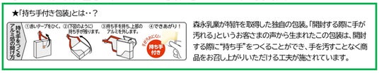 さらに「持ち手付き包装」により、ワンハンドで手を汚すことなくお召し上がりいただけます。