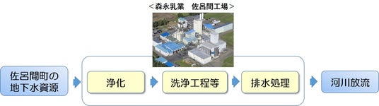 佐呂間工場の生産工程には多くの水が必要です。その生産工程で使用した水を再生利用するシステムを構築することで、工場における地下水資源の使用量の抑制を進めて参ります。これにより佐呂間町地域の限りある地下水資源の保全が期待できます。