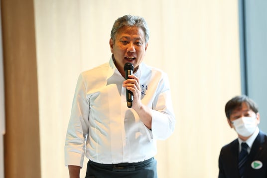 集まった報道関係者にも「美味しいですか?」と笑顔で問いかける佐々木シェフ。「子供たちがより良い世の中で、食文化を受け継いでいくビジョンにもつながる」との想いを込め、これまでの植物性メニューの概念を超える新しい味わいを大阪・関西万博で体験してほしいと語り、和やかな雰囲気の中で締めくくられました。