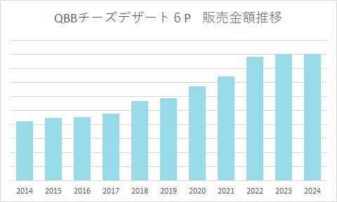 チーズデザート市場約77%のシェア*で市場を牽引している「QBBチーズデザート6P」は、売り上げ・販売個数ともに年々増加しており、成長し続けています。売り上げ成長率は直近5年間で約1.3倍。販売個数も2021年に2000万個を突破し、約10年間で倍増しています。
