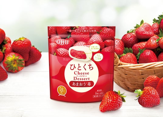 「QBB包み」シリーズはこれまで「カマンベール風味」「ゴルゴンゾーラ風味」「トリュフオイル入り」の3種を展開しておりましたが、今回シリーズ初となるデザートフレーバーとして「ひとくちチーズデザート あまおう(R)苺」を発売いたしました。