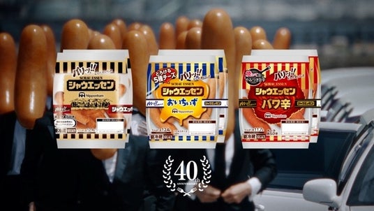 この40周年の特別なタイミングを記念して、新CM「ぞくぞく」篇では、新しいシャウエッセンがぞくぞくと登場していることを、シャウエッセンの姿をした“シャウマン”がぞくぞくと登場してくるという映像で表現。これからも広がっていくブランドの可能性を伝えています。メッセージも「新しいシャウ、ぞくぞく。」という極めてシンプルなもので、インパクトを重視し、かつてないほどのシャウエッセンを画面上に登場させた、一度見たら忘れられないCMです。
